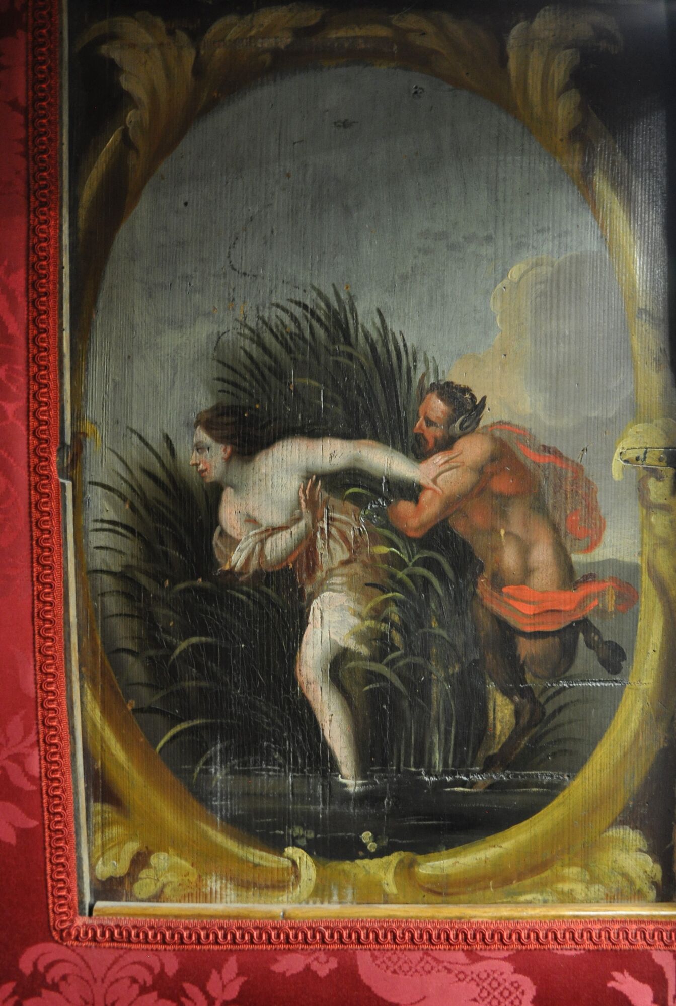 Die Sänfte besteht aus einem hochrechteckigen Kasten mit Fenstern (zwei seitlich mit Schiebeläden, eines frontal) und einem geschweiften Lederdach. Rechts und links der Sänfte durch Ösen geschoben, befindet sich je eine Tragestange. Das gesamte Äussere ist mit gemalten Akanthusblättern, Putten und Waffentrophäen dekoriert. Auf den Innenseiten der Schiebeläden sind mythologische Szenen gemalt (Rechts: Perseus auf dem geflügelten Pferd Pegasus, der das Meeresungeheuer besiegt und dadurch die an den Felsen gekettete Andromeda befreit. Links: Die Nymphe Syrinx, die sich in Schilf verwandelt, um dem lüsternen Pan zu entkommen). An mehreren Stellen sind die ineinander verschlungenen Initialen «Z» und «L» abgebildet. Sie dürften auf Beat Kaspar Zurlauben (14.03.1644–12.05.1706) und seine Ehefrau Maria Theresia Ester Lussi aus Stans (Heirat 1684) hinweisen. Ausserdem sind auf der Tür und auf der Rückseite der Sänfte das Wappen der Zurlauben abgebildet (geviertes Wappen mit Turm, Löwen und Lindenblättern sowie Adelskrone über dem Wappen und das Herzschild mit der Bourbonenlilie).